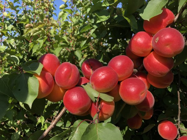 Frutto: Albicocca rotonda, molto colorata su buona parte della superficie. Calibro A-AA, no cracking, sapore buono, dolce, consistenza elevata.