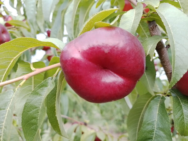 Frutto: Nettarina a polpa gialla, pezzatura grossa, con peso superiore ai 150-180 grammi, a forma piatta, rotonda regolare; epidermide di colore giallo rivestita per il 70-80% di sovraccolore rosso brillante; la polpa è di tipo “slow softening”, cioè a maturazione molto rallentata che ne permette una ottimale gestione in epoca di raccolta; il sapore è dolce, a bassa acidità. Poco sensibile alla monilia. Il nocciolo è aderente, di medie dimensioni.