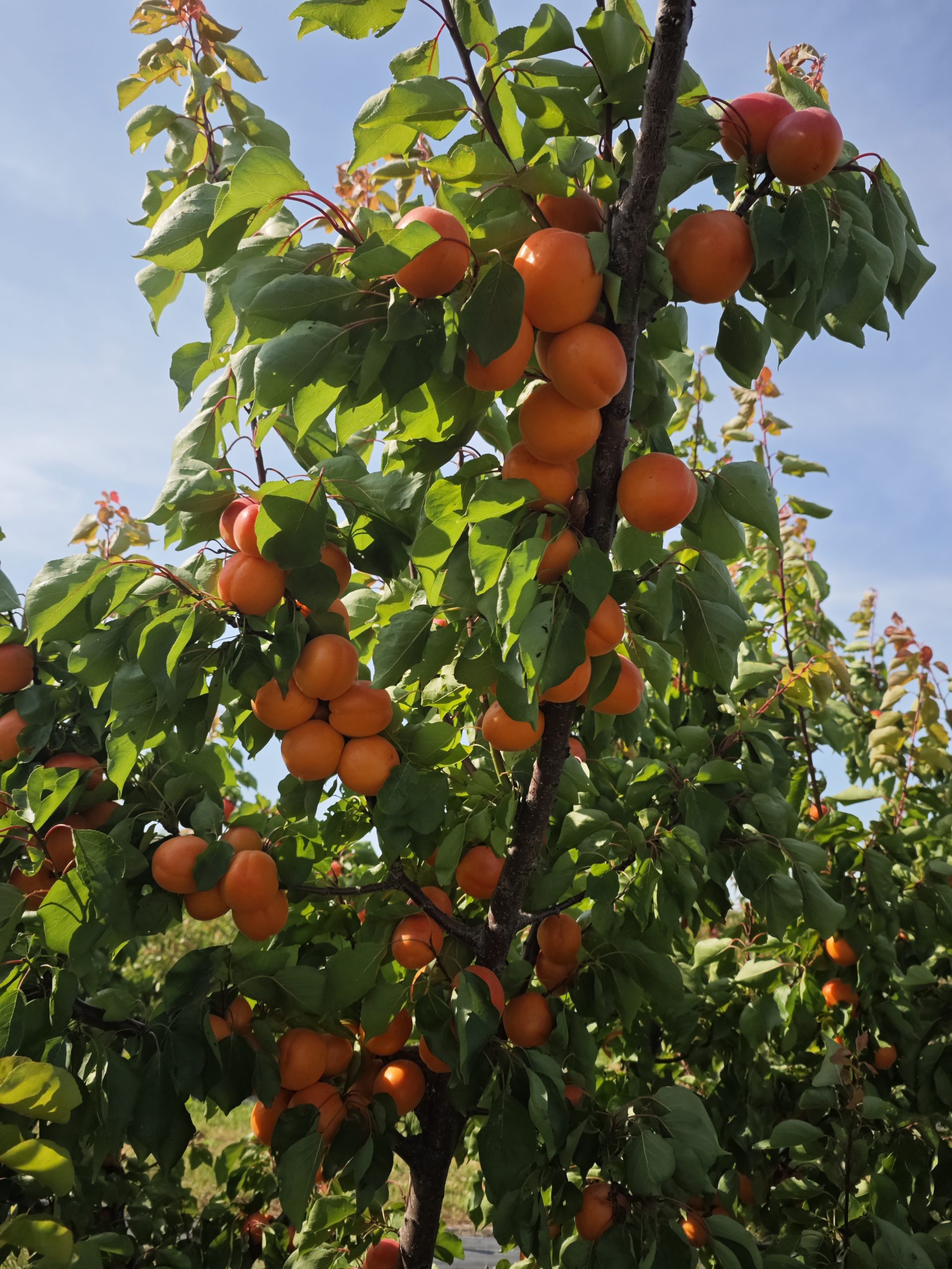 Frutto: Calibro 2 A, forma rotonda, leggermente ovale, colorazione di fondo arancione luminoso, sovraccolore 20-50% rosso luminoso, consistenza buona (74 durofel), qualità gustativa buona dolce (13° Brix) e succoso.