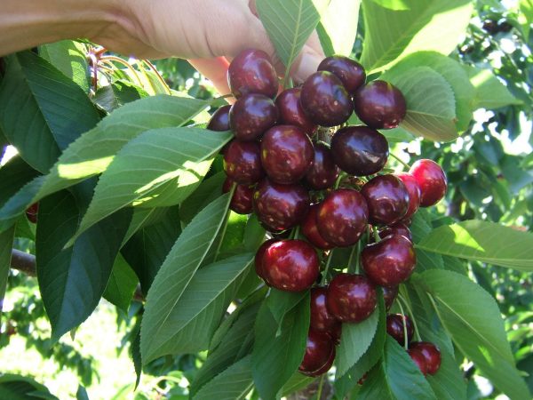 Frutto: Calibro 28-30 mm, colorazione rosso intenso, media resistenza al cracking, peduncolo medio lungo, conservabilità elevata.
